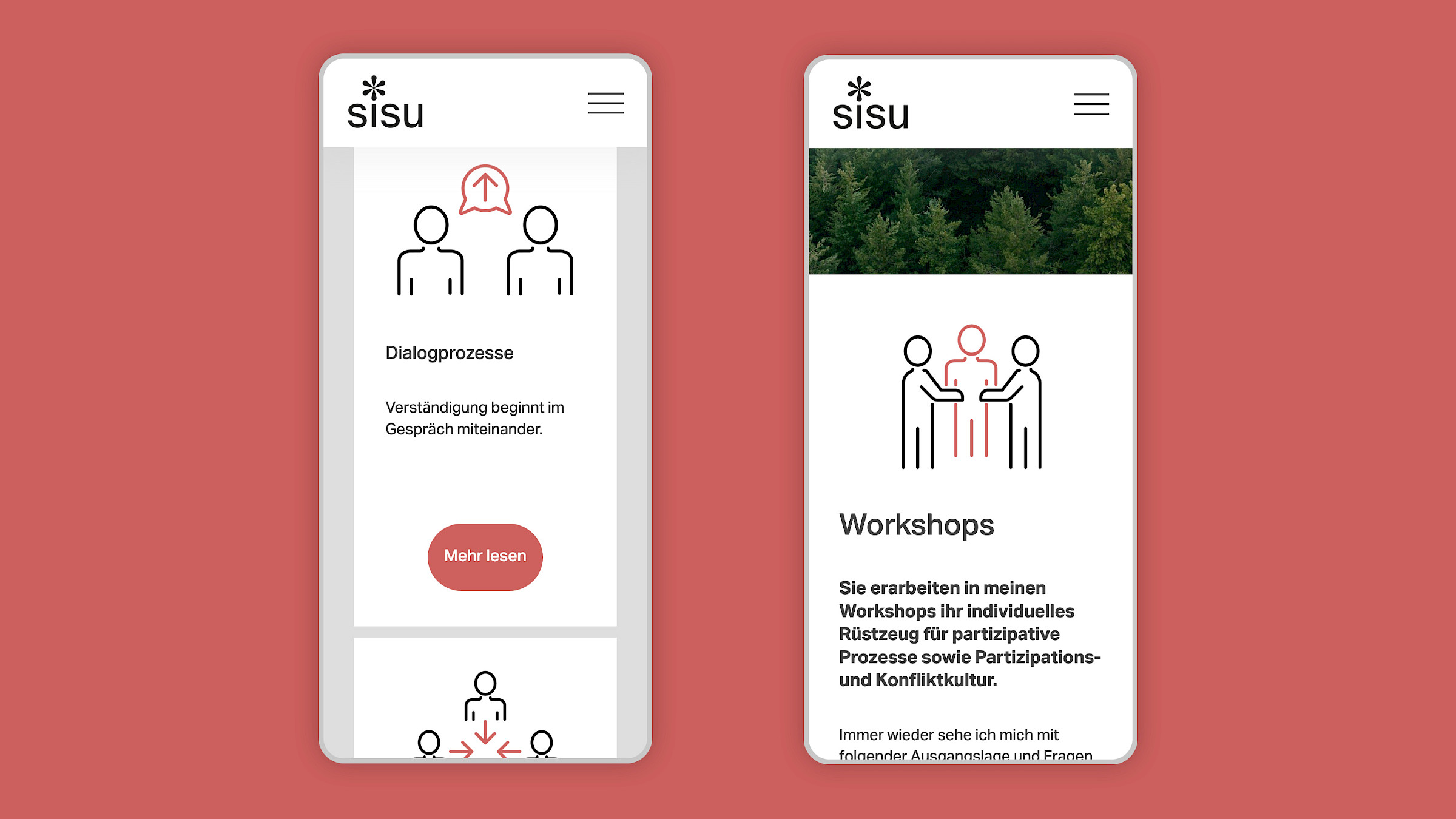 Sisu ist ein finnischer Begriff, der eine Haltung bezeichnet, wie man Herausforderungen annimmt, handlungsfähig und offen für Neues bleibt und praktische Lösungen findet, um voranzukommen. Für uns ging es darum, den Begriff in einem Corporate Design auszudrücken und in verschiedene Kommunikationsmittel zu giessen. Der finnische Nadelwald diente uns als Bühne, um das Sisu-Gefühl zu wecken. Er findet sich, genau wie der Stern im Logo, als Corporate Identity immer wieder.